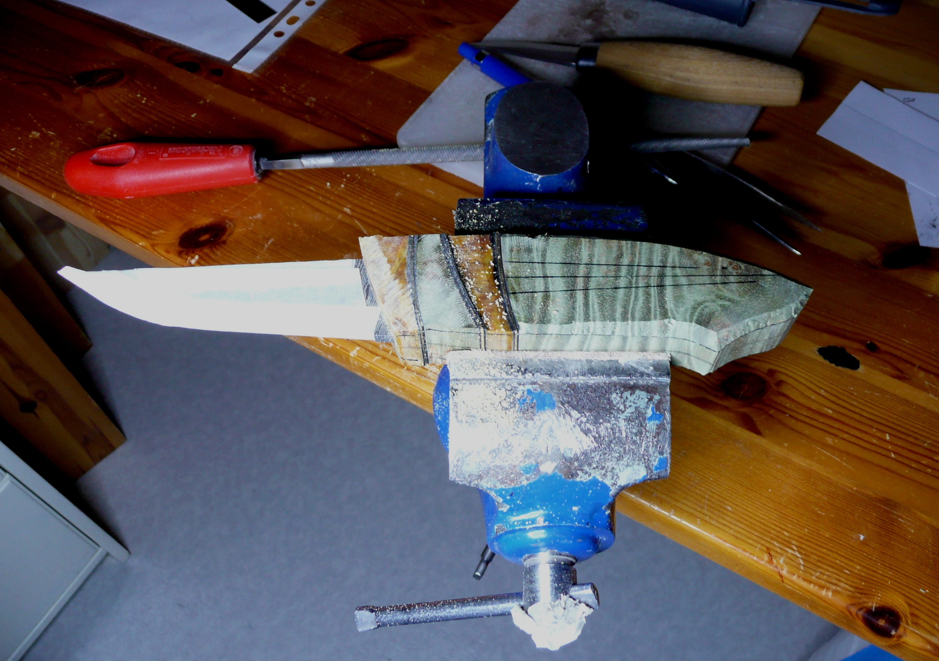 Har redan börjat att fila på nästa kniv, blir med ett damaskerat blad i kolstål av Robert Mattsson.