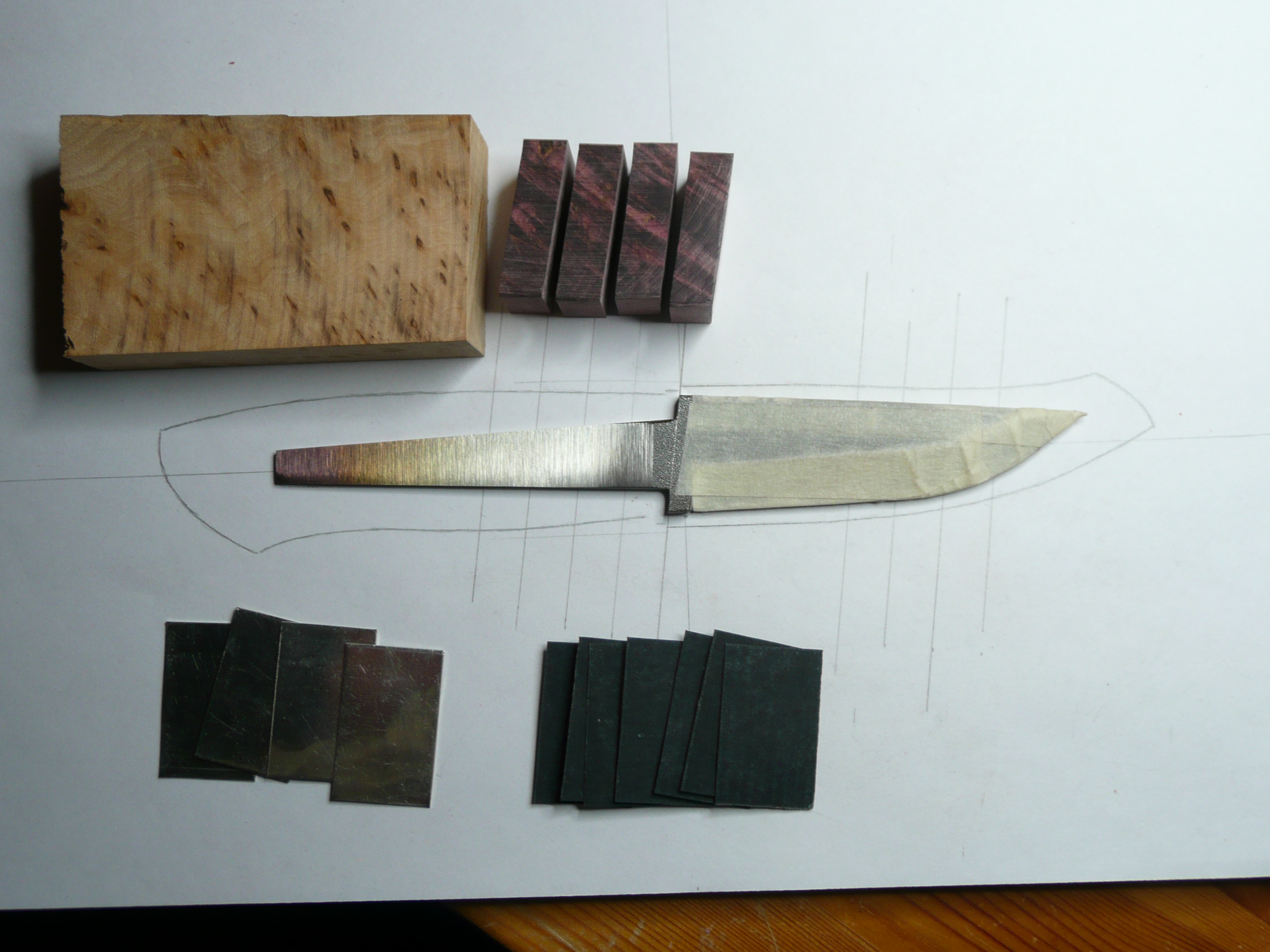 den här kniven kommer att ha en mix-slida, altså en tränederdel med en läderholk.