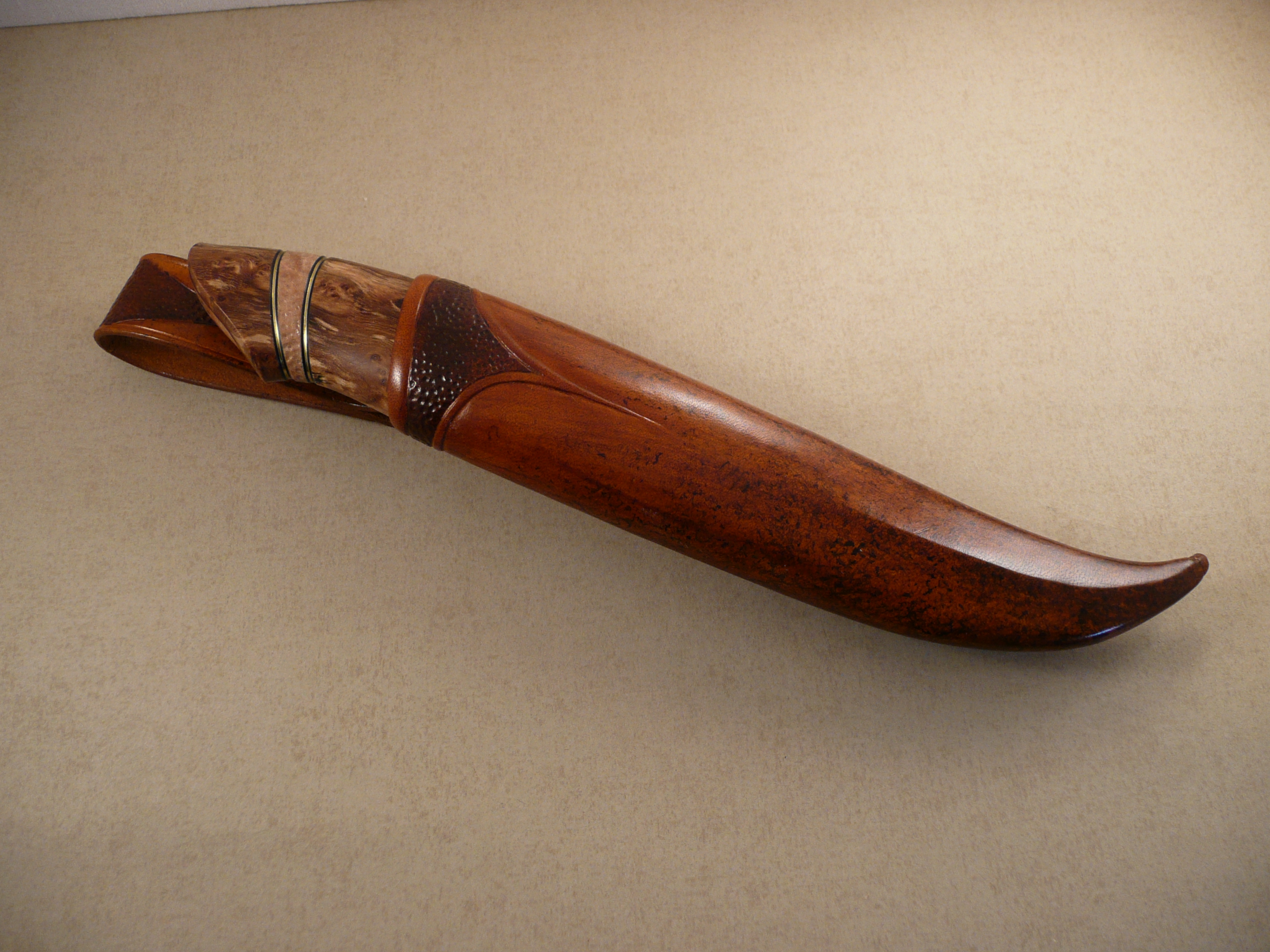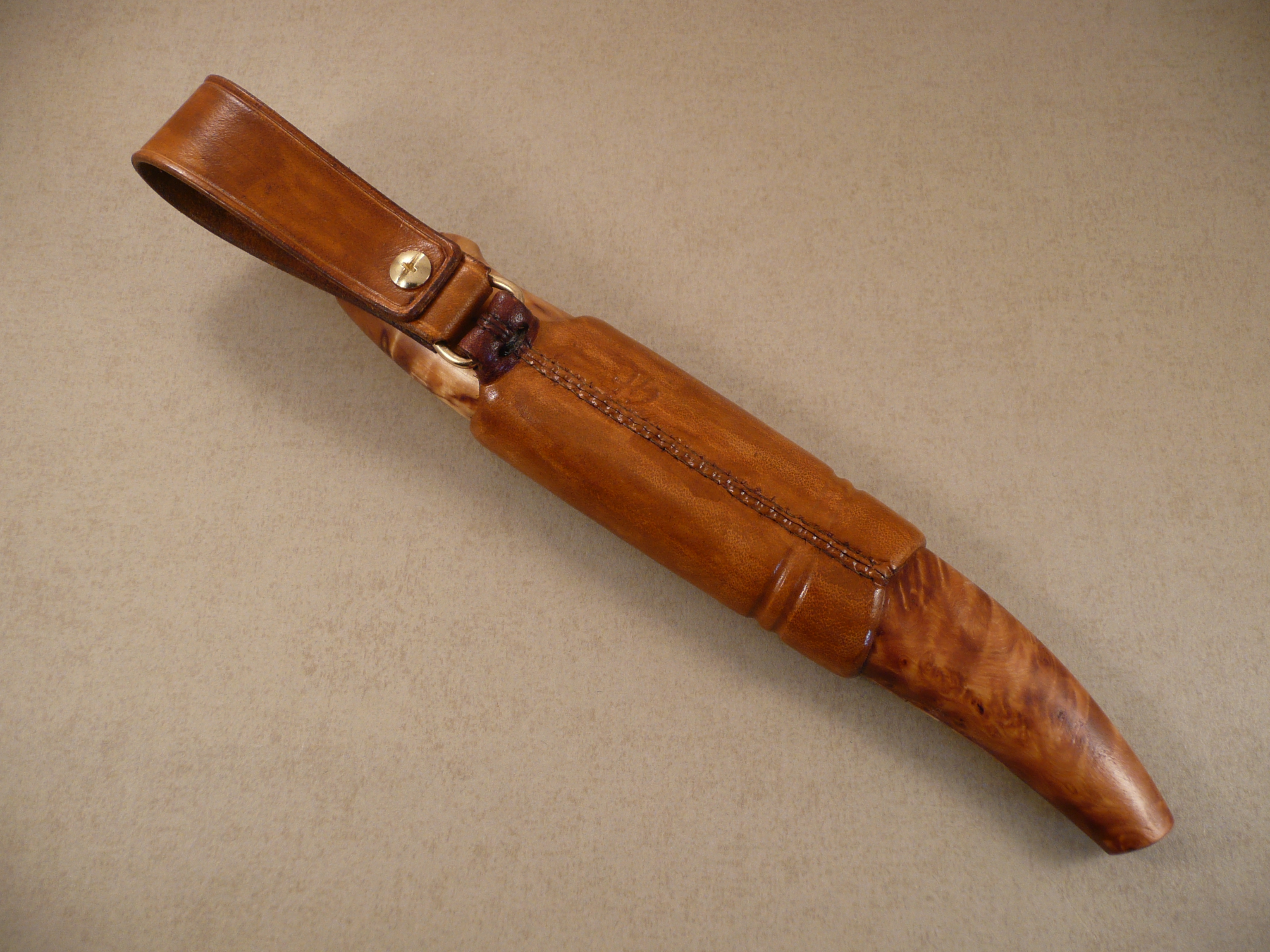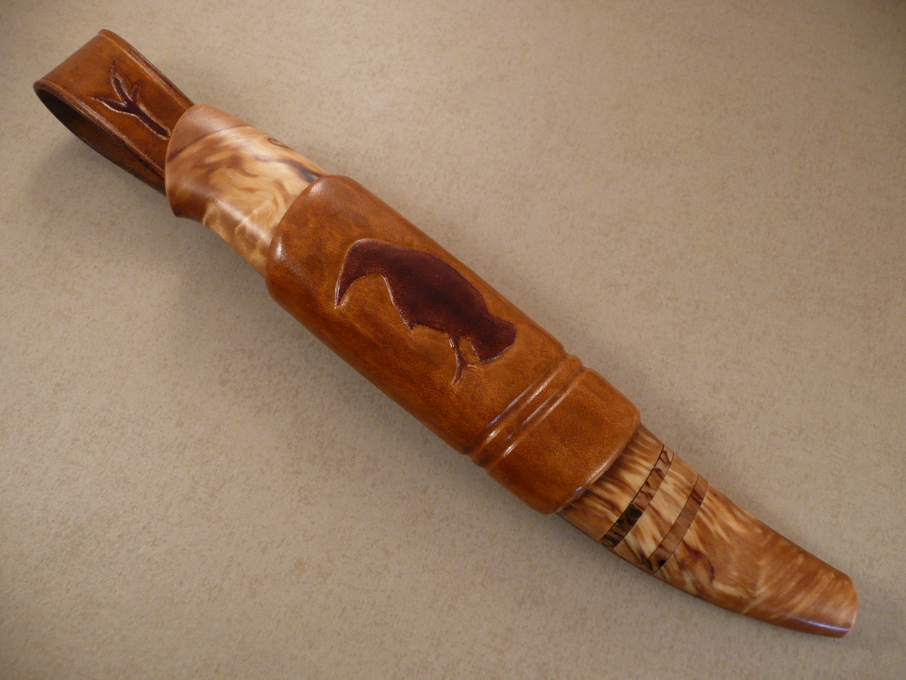 Blade by Michael Holmström. handle in spalted birch and bolster in stabilized masur birch.