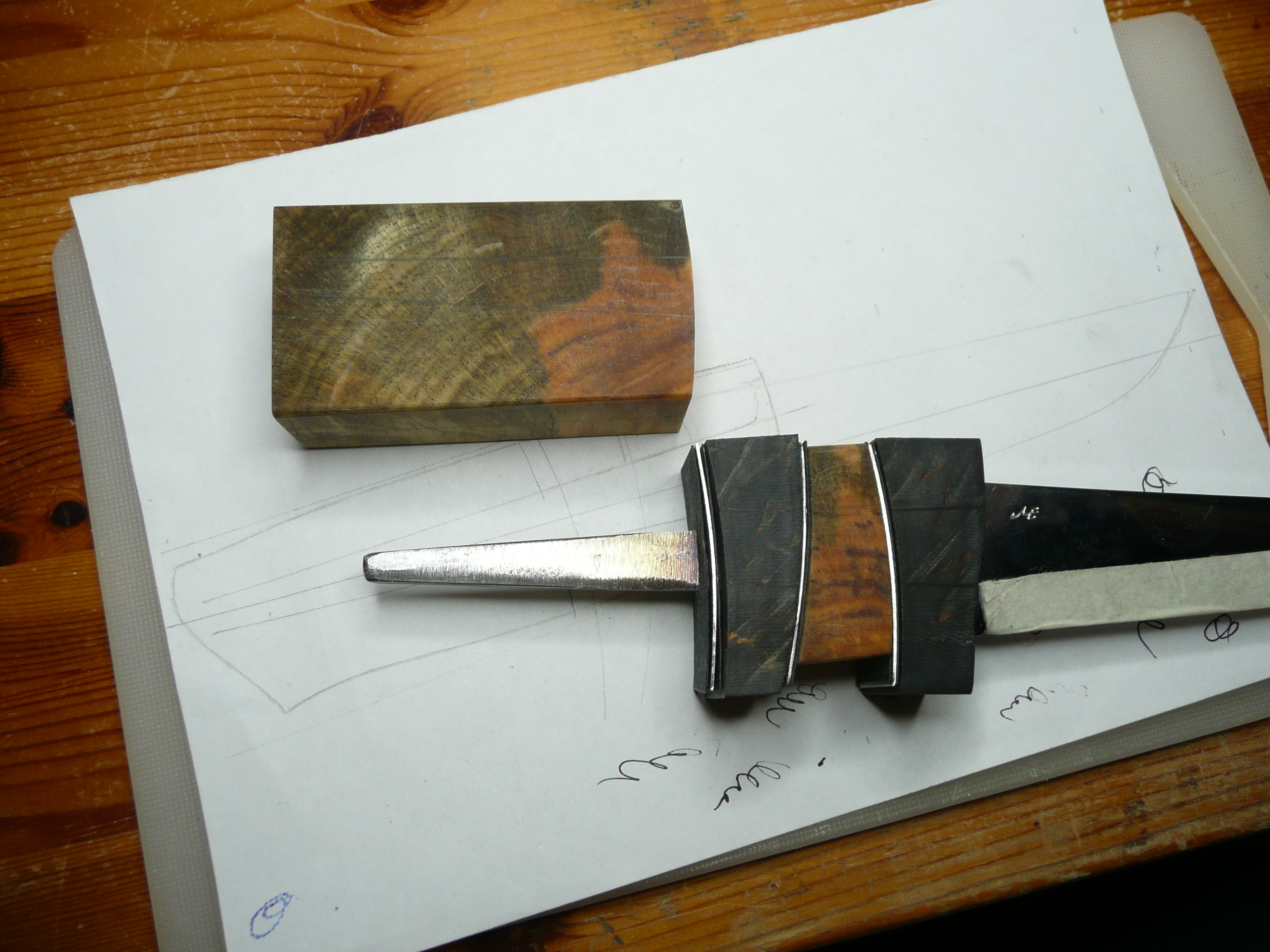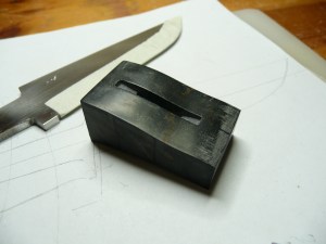 since the wood in the handle is cross cut, I will let the tang ended just 1 cm. from the end of the handle 🙂
