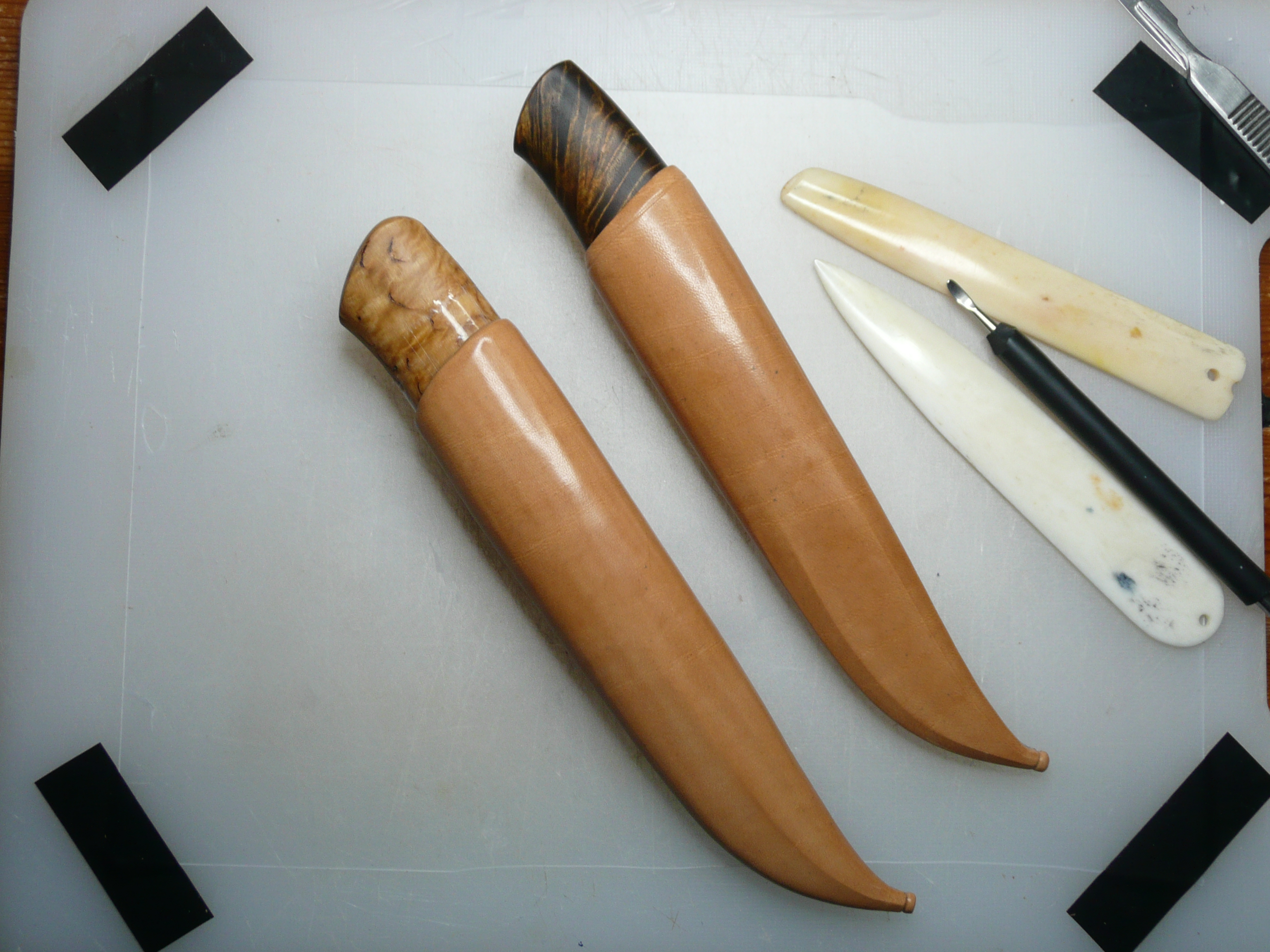 I succeded to make two sheaths and hopefully I will dye them today.