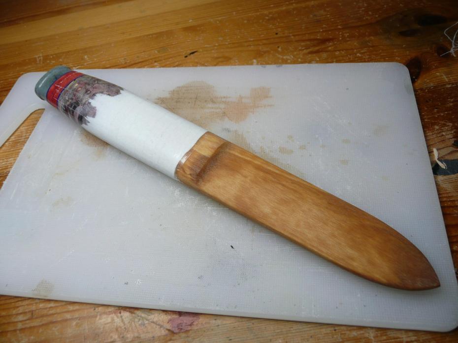 and after that bath I start to prepare the knife for the leather work 🙂
