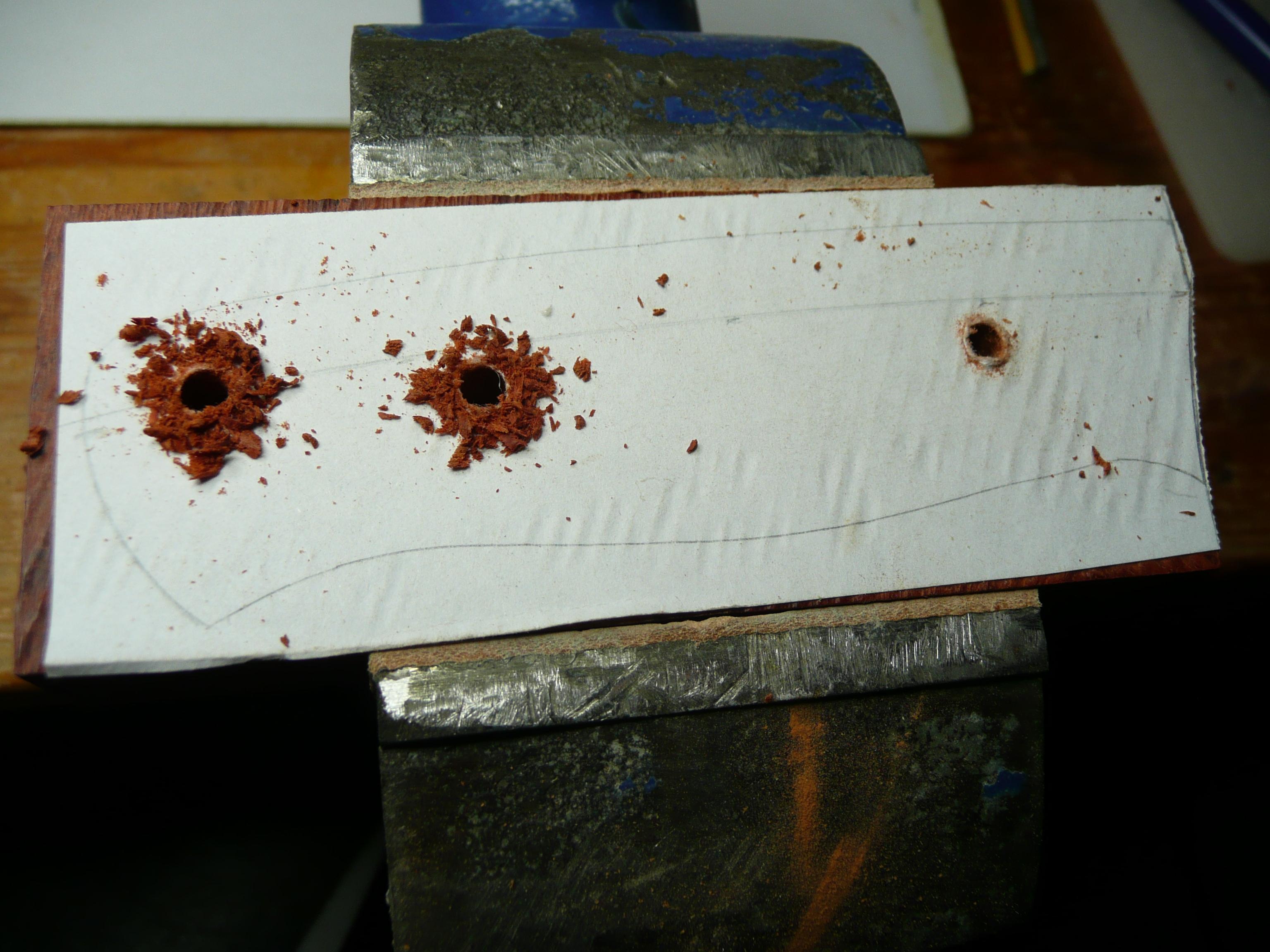 then drilling holes for the pins useing a 4mm. drill so that I can adjust the hole for the 5mm. pins.