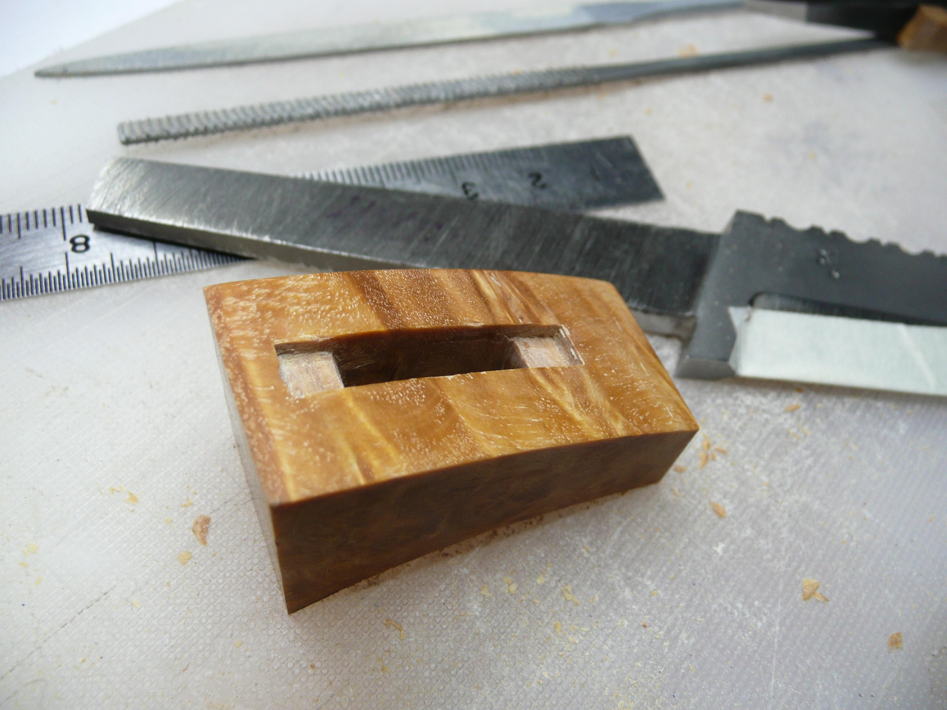 …of wood in this one, just two 😉 a bolster in birch root and the rest of the handle in cross cut oak 🙂