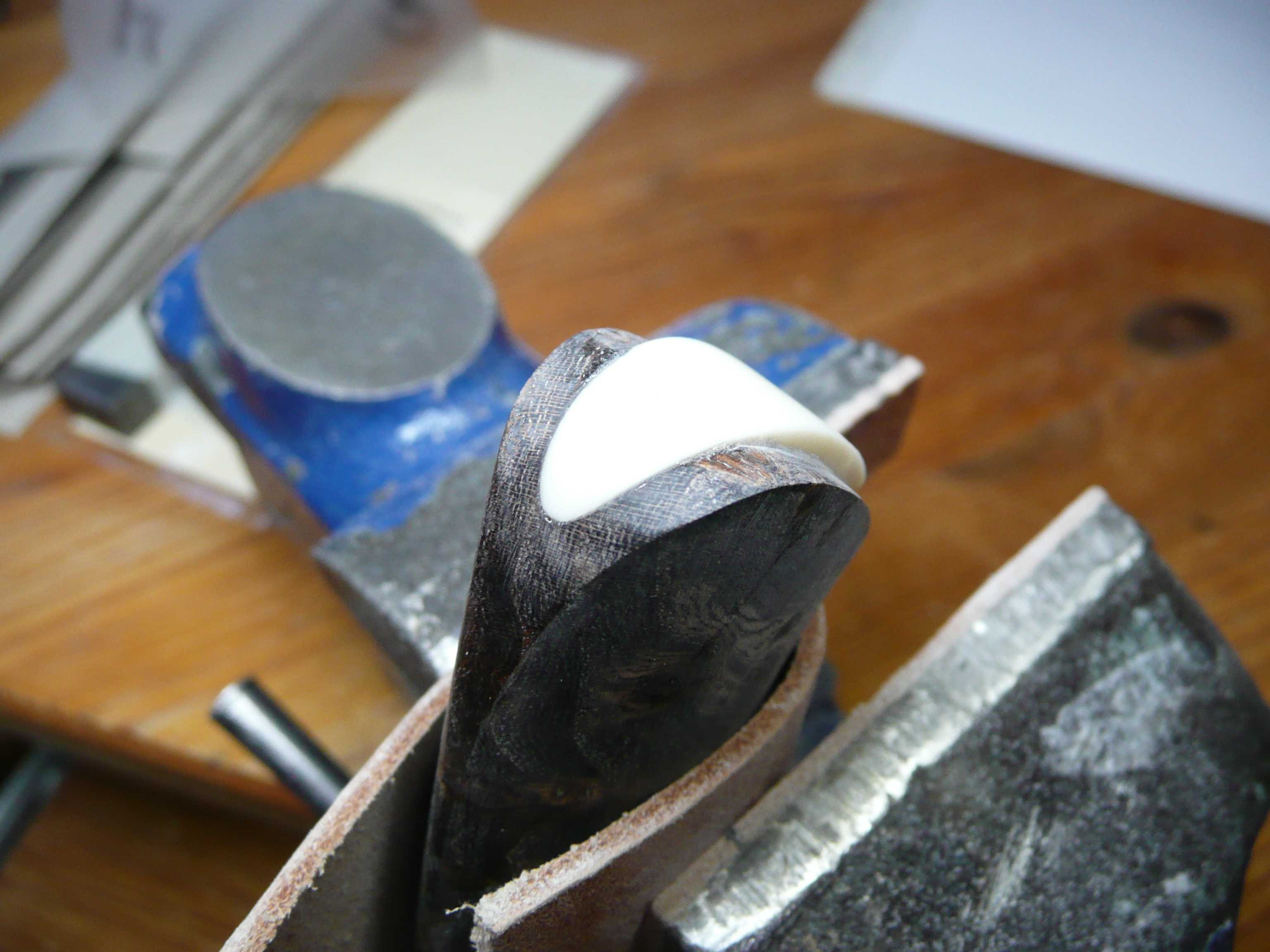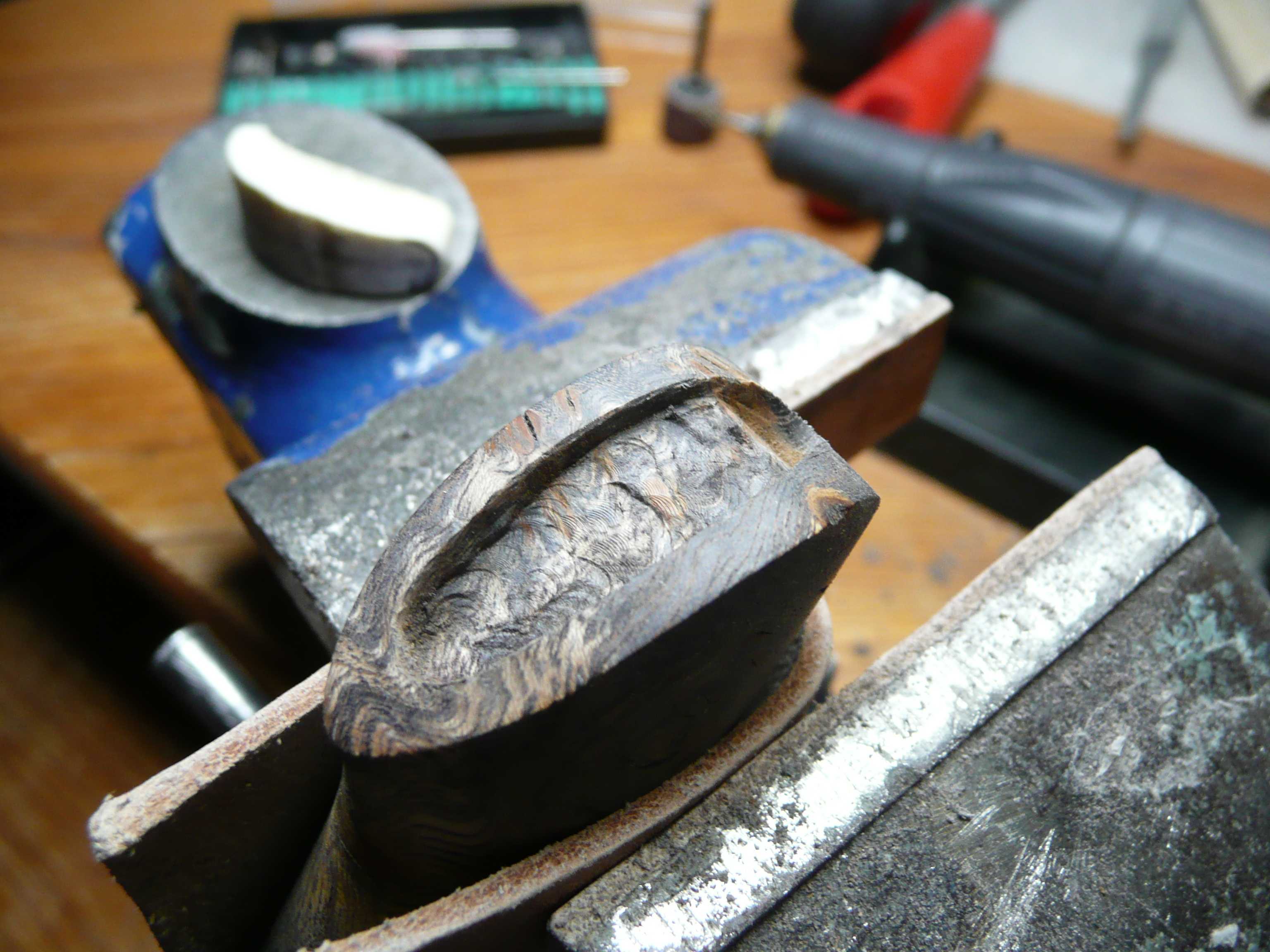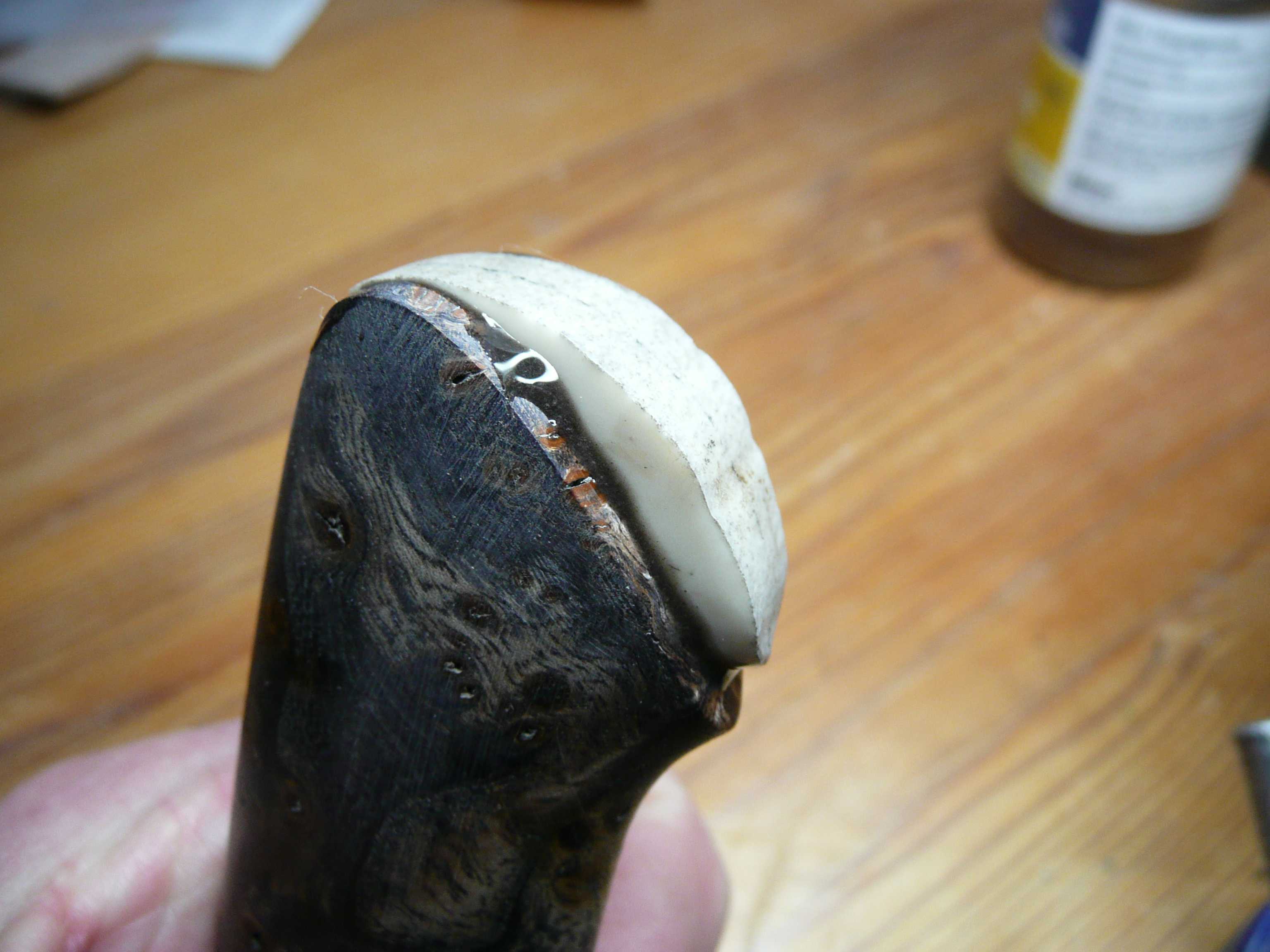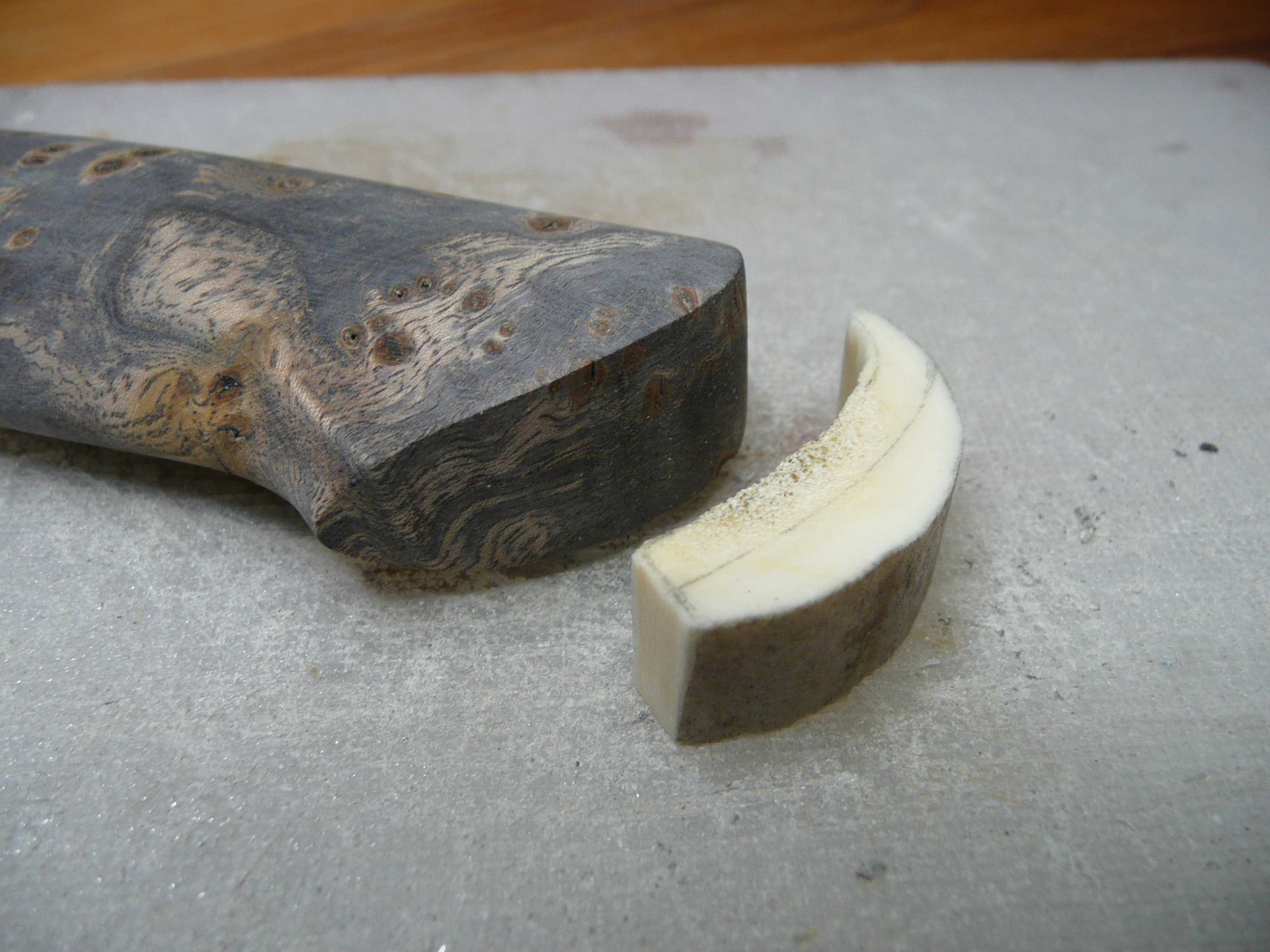 thought that I have to do something at the but end, why not a inlay of rein deer antler? but it’s going to be a big hole 😉