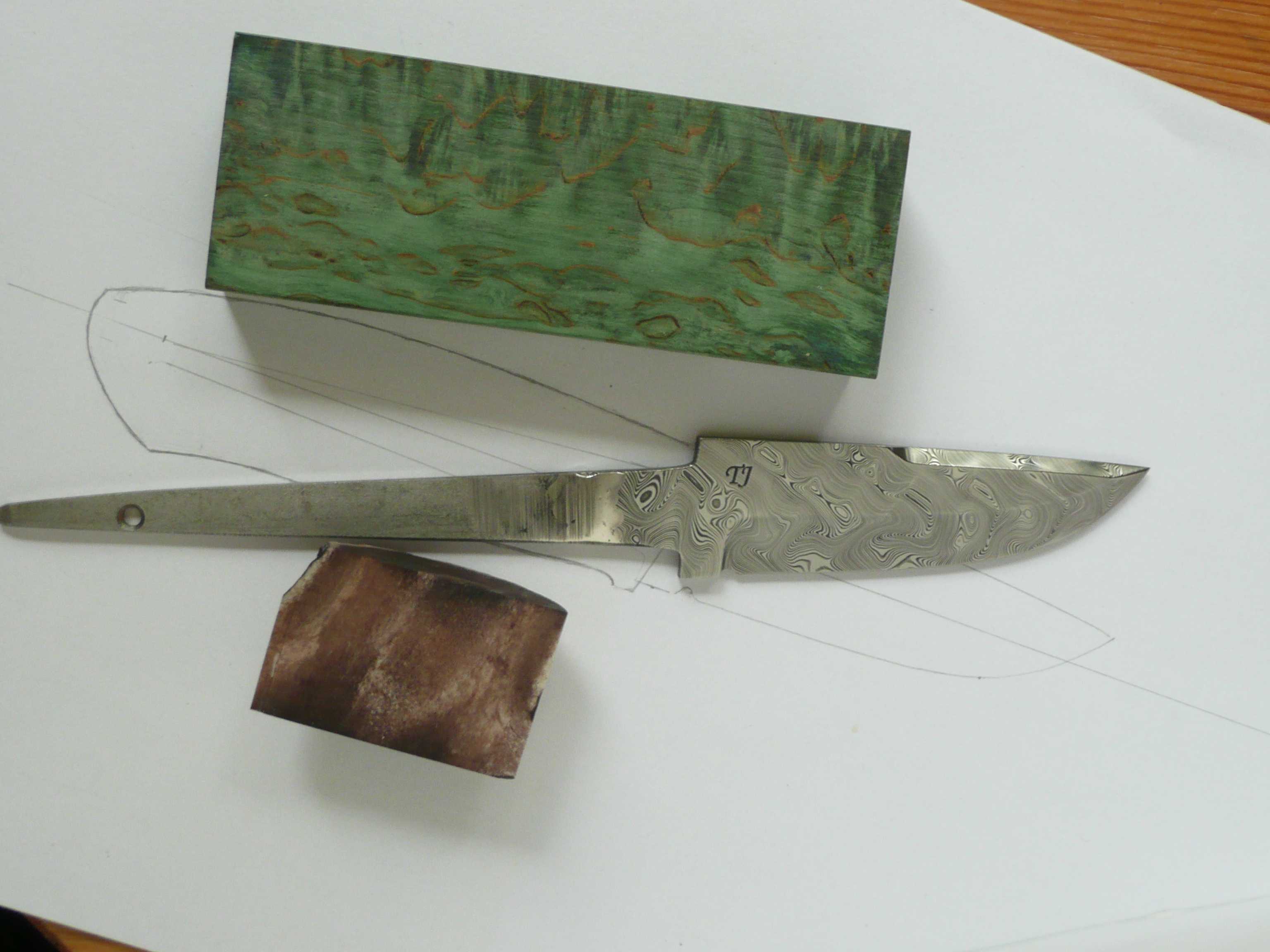 a pice of dyed and stabilized masurbirch, bolster in dyed and stabilized elkhorn, guess it will be some tinspacers to 😉