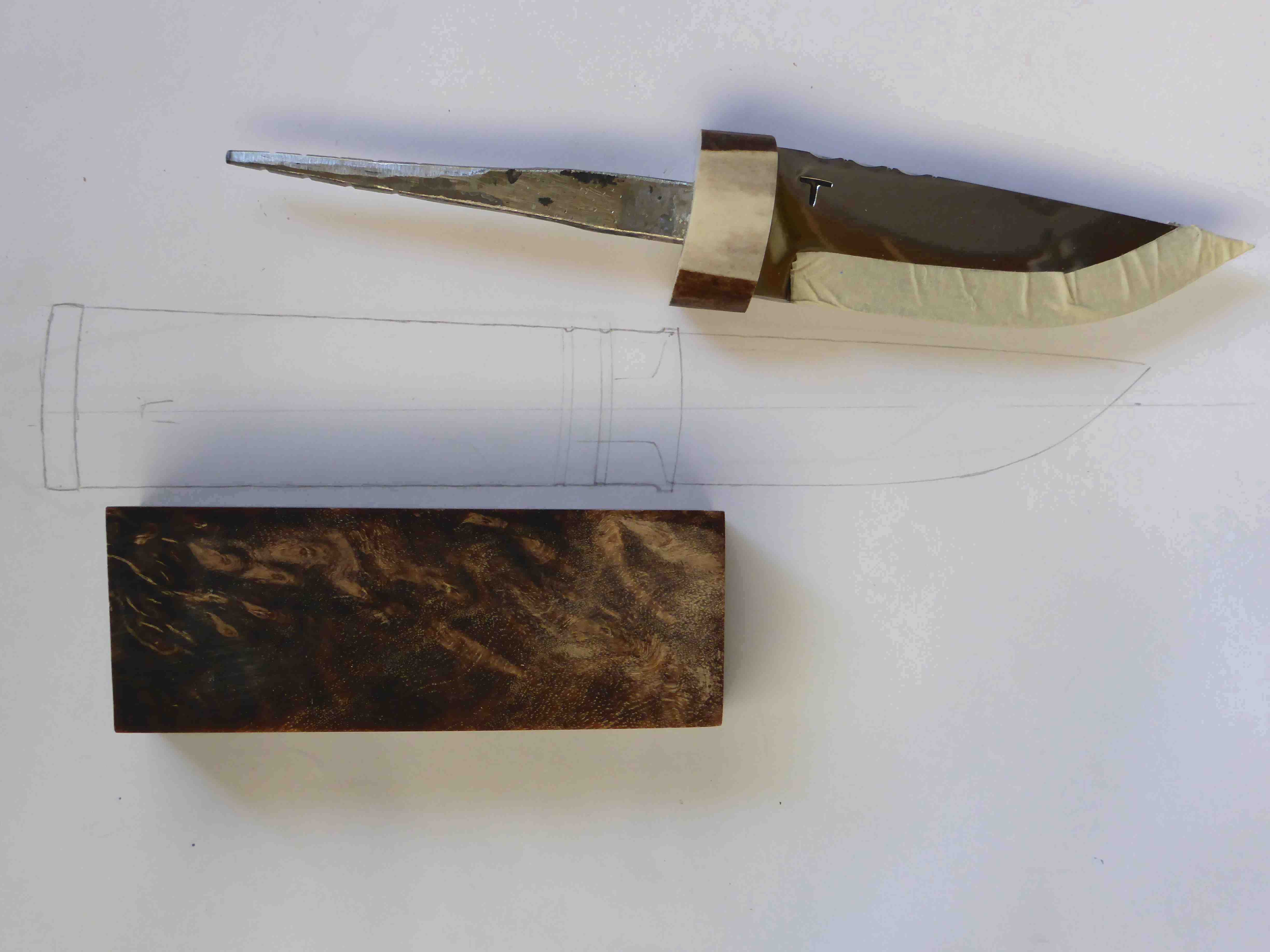 it’s going to have a laminated carbonsteel blade, forged by my friend Torsten Almén. bolster in reindeer antler and stabilized birch 🙂