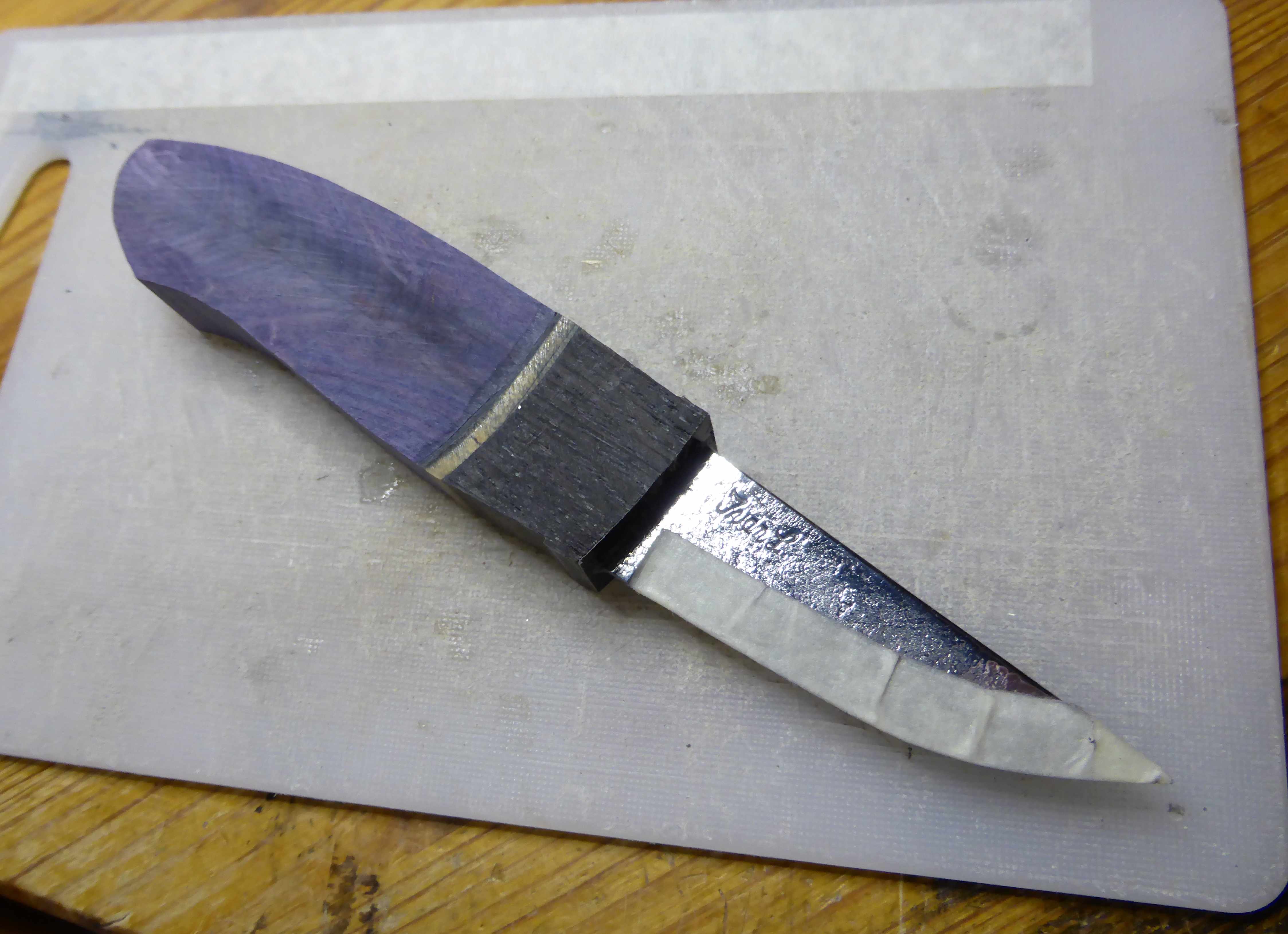 the bolster in stabilized bog oak, still got some work to do on it, and the handle parts with just one pice of vulcanfiber missing, just before it’s time to glue them together π