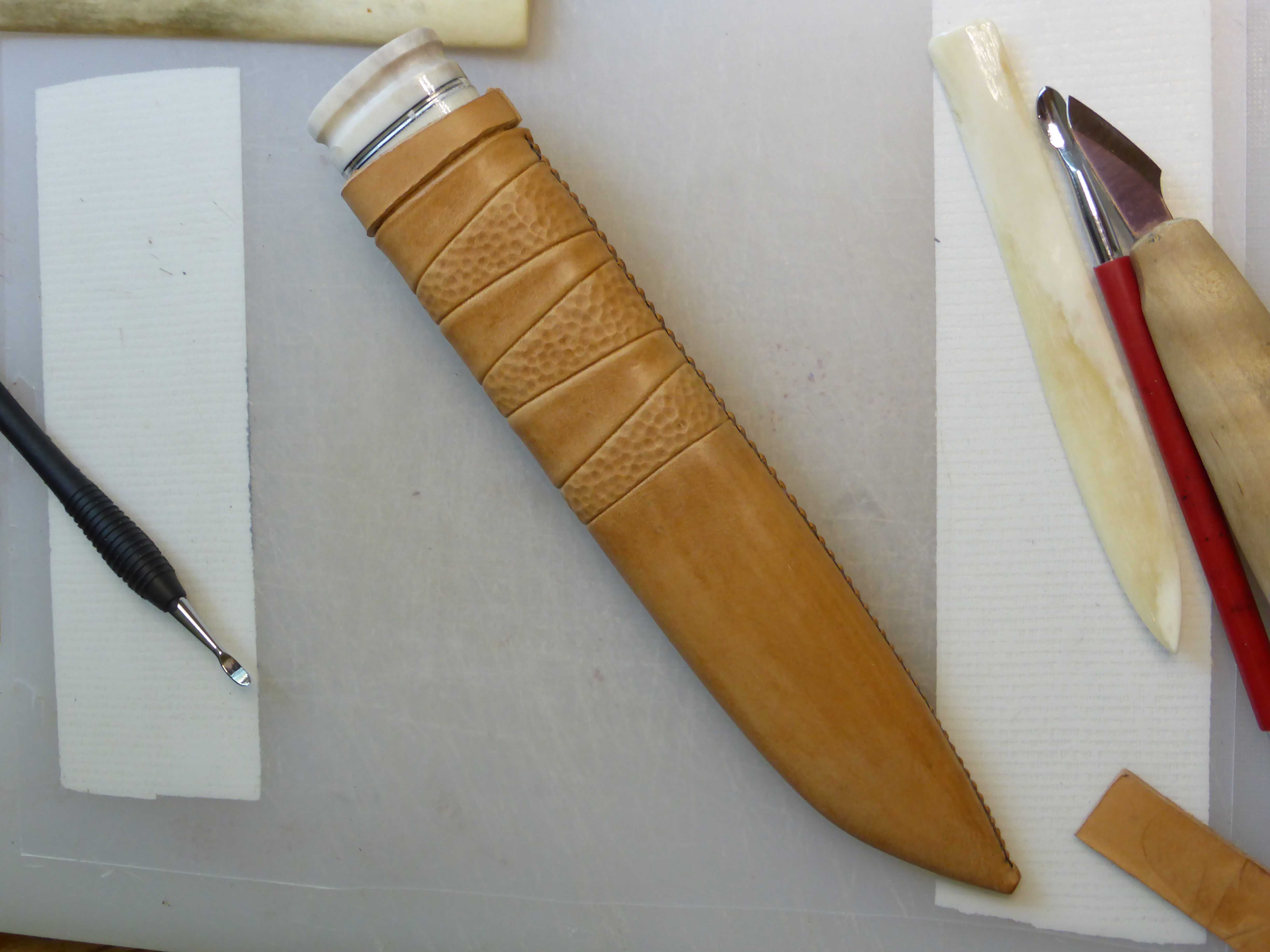 it’s shaftleather in the sheath, so it was quite easy to work with 🙂 hopefully I’ll will get some time to dye it soon 🙂