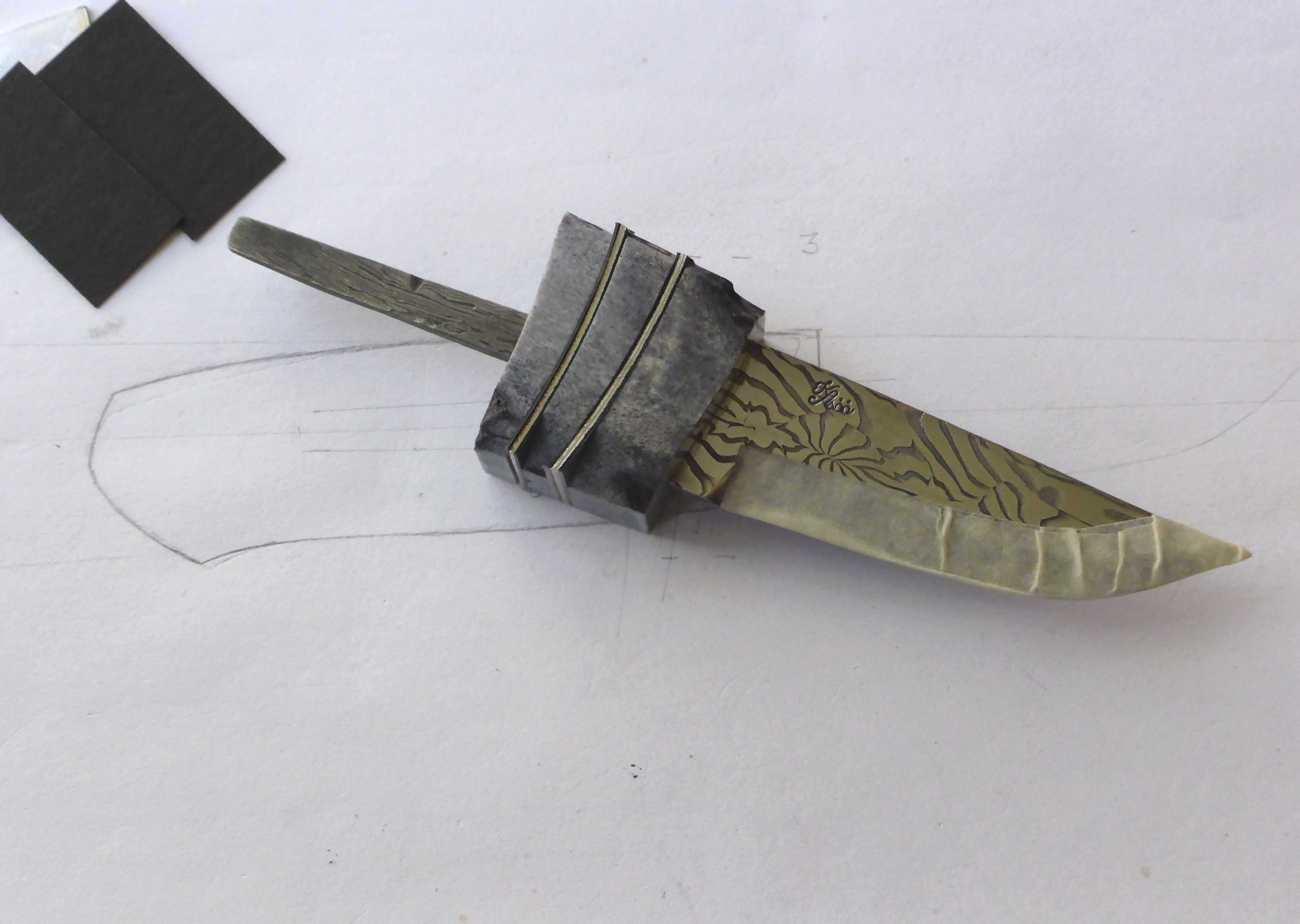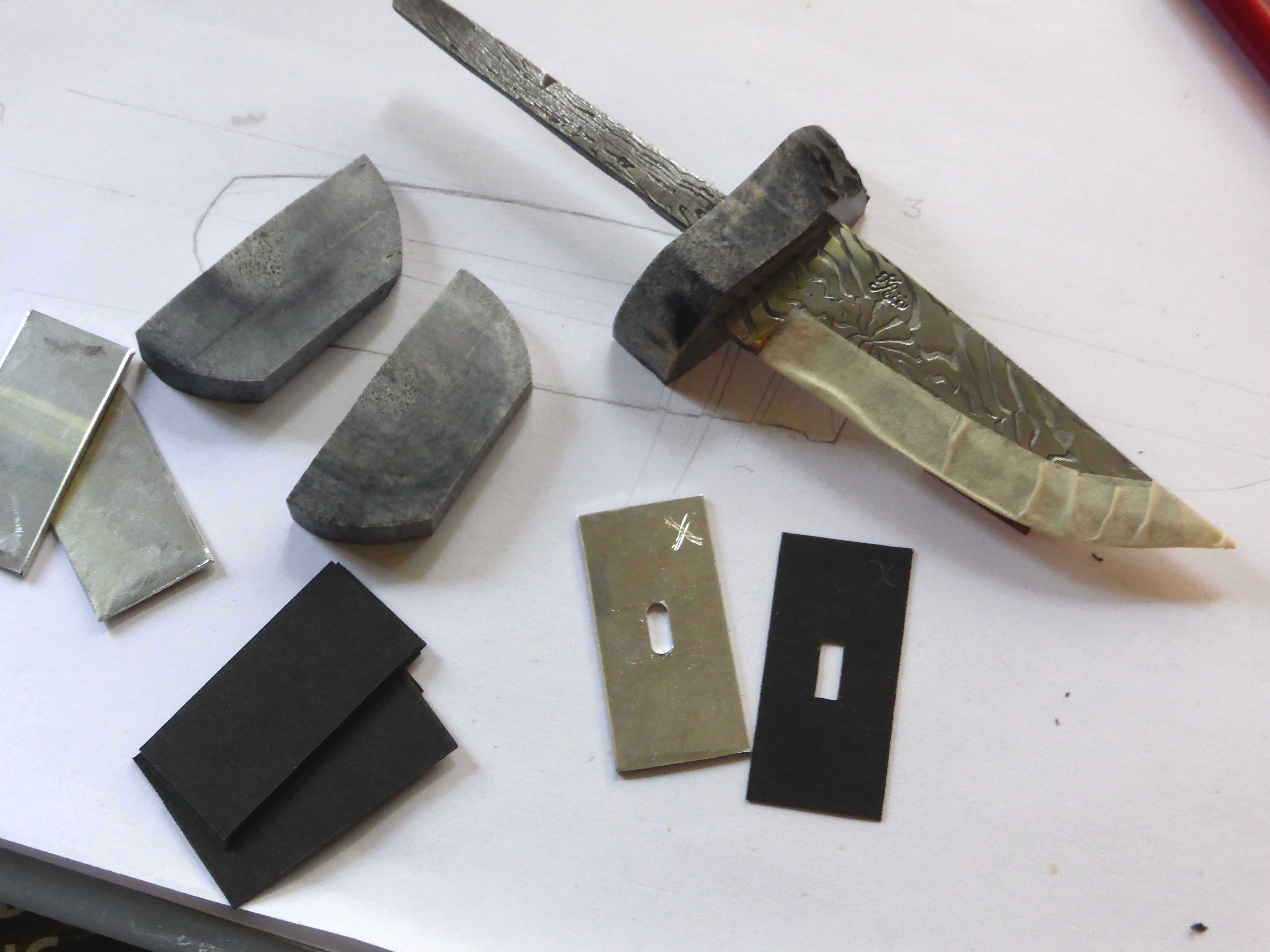 … trying to find some wood for the handle, and to glue the rest of the moose antler parts and some pewter spacers 🙂