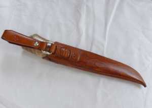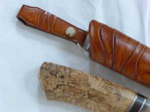 handle in musk ox antler, African blackwood, stabilized crosscut spalted ash and pewter spacers 🙂