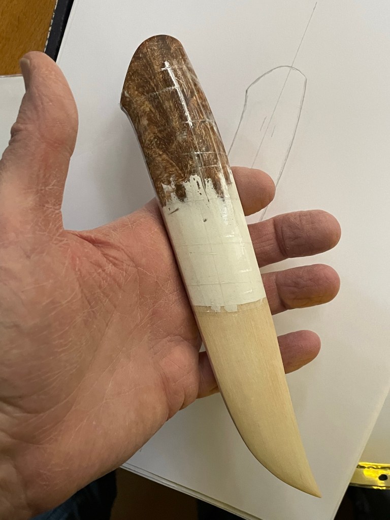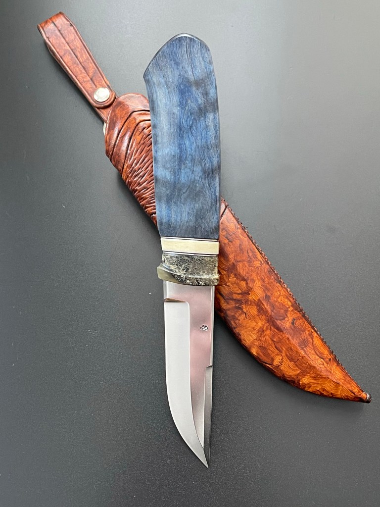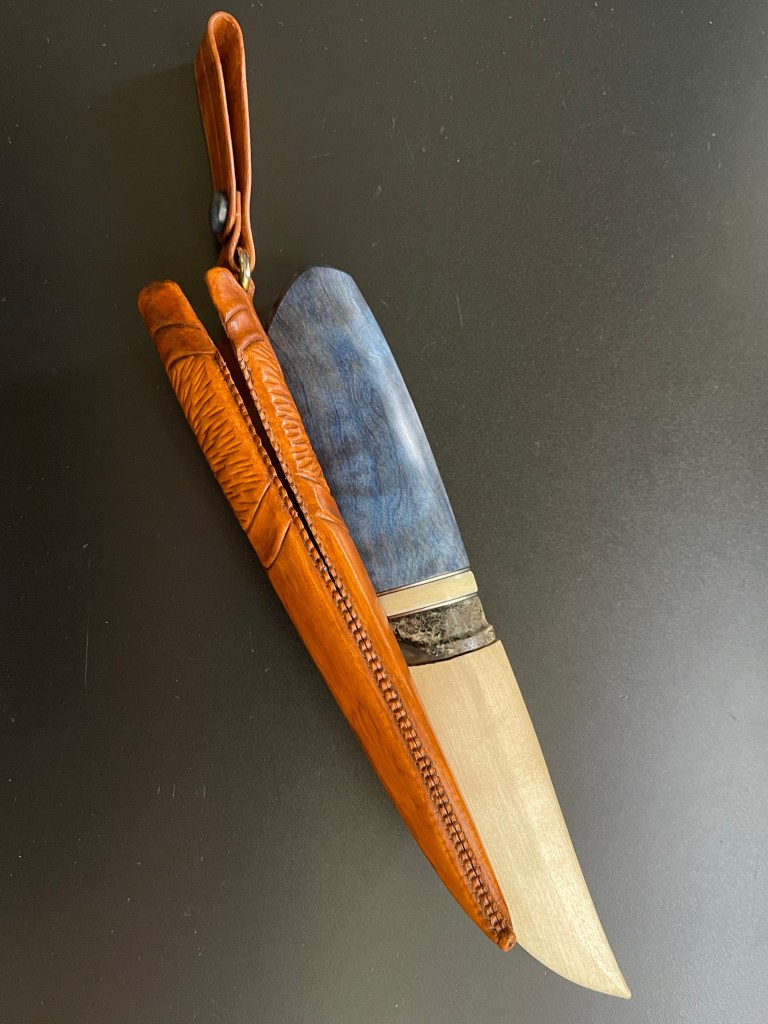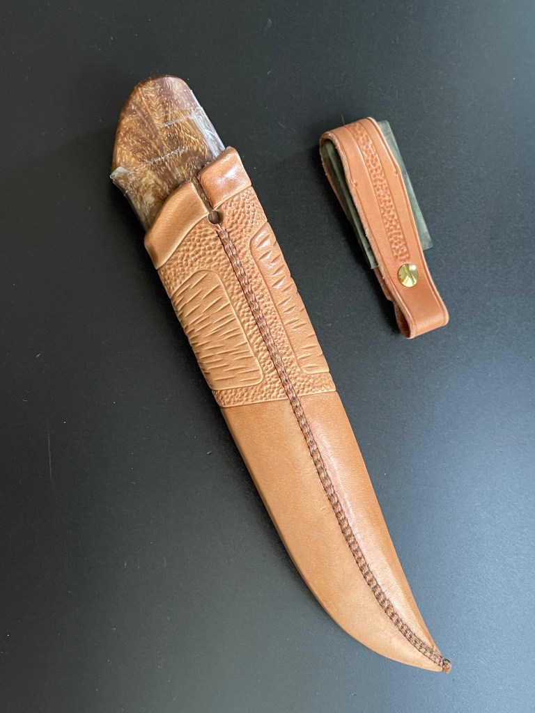 ….the sheath has now been sewn to the brown knife, and it looks promising.