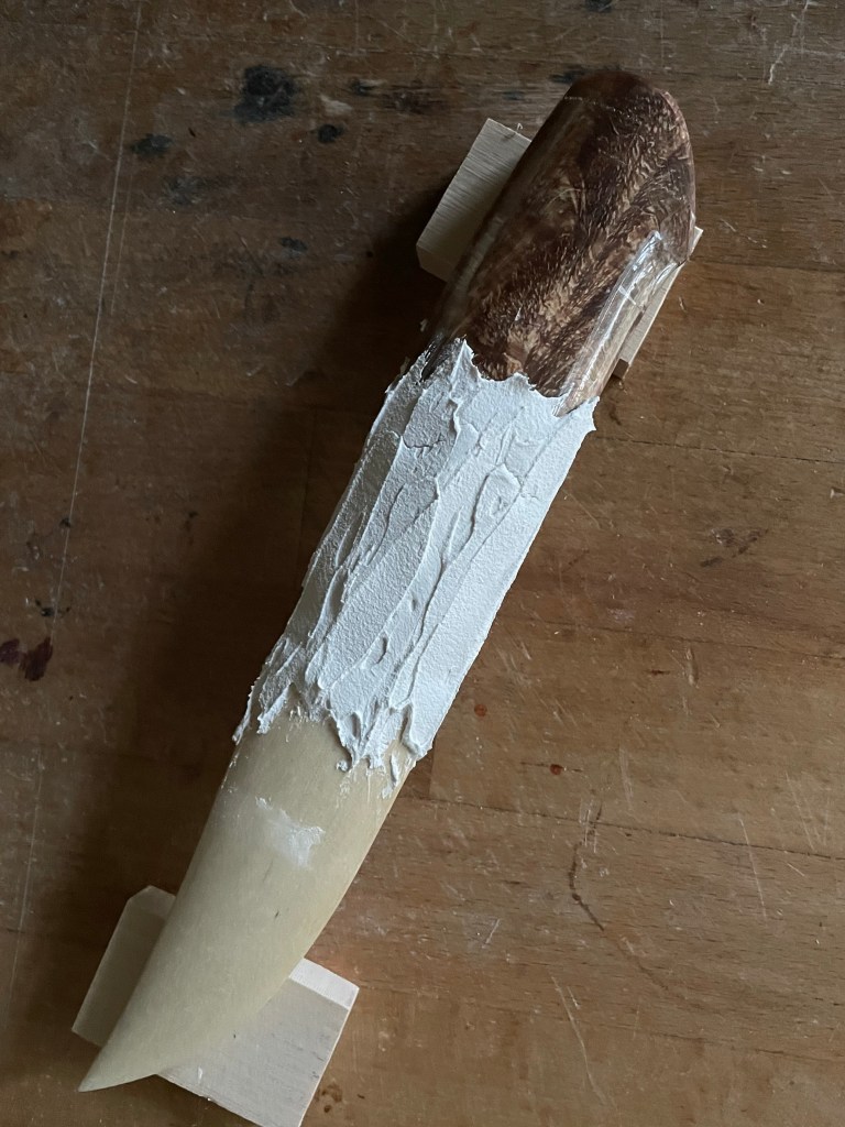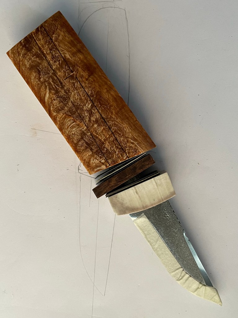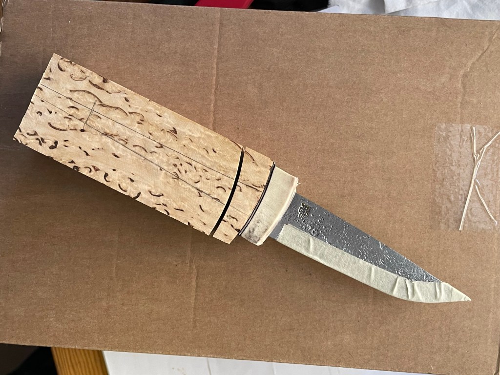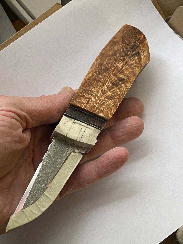 ….the sheath has now been sewn to the brown knife, and it looks promising.