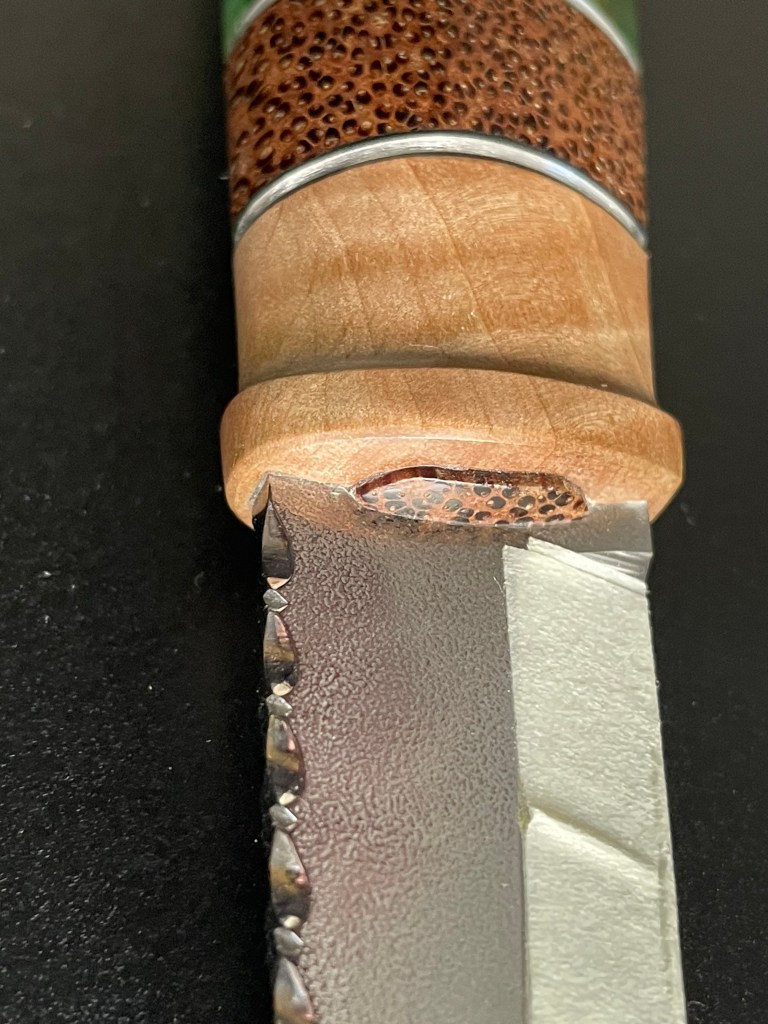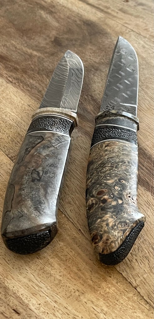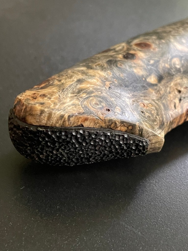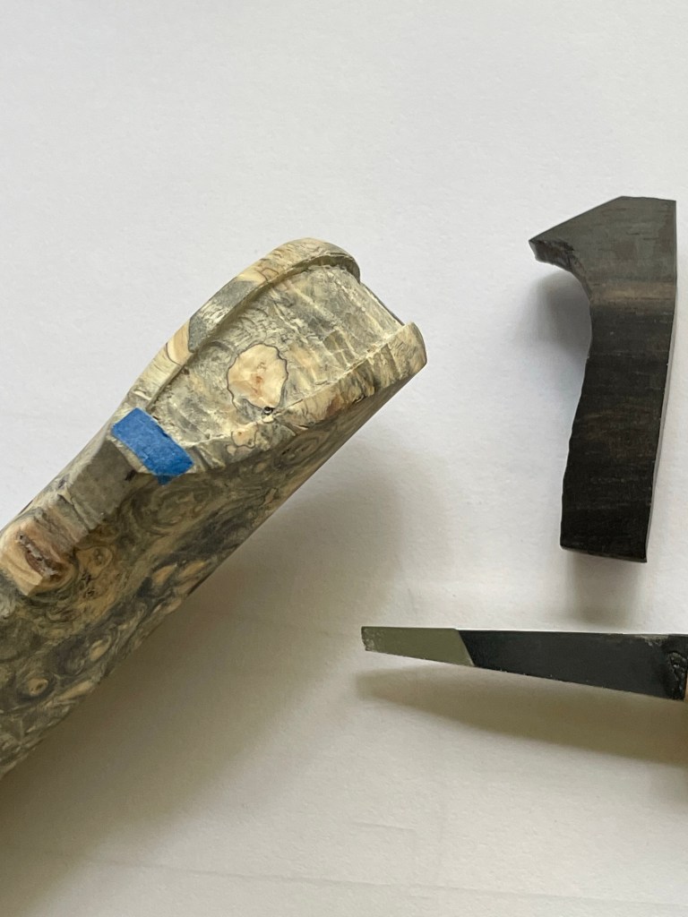 …or at least slowly. I do continue with the knife with chestnut burl.