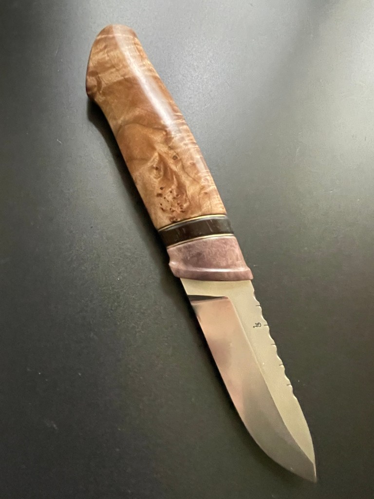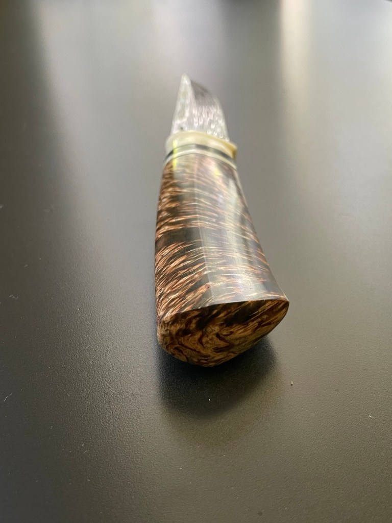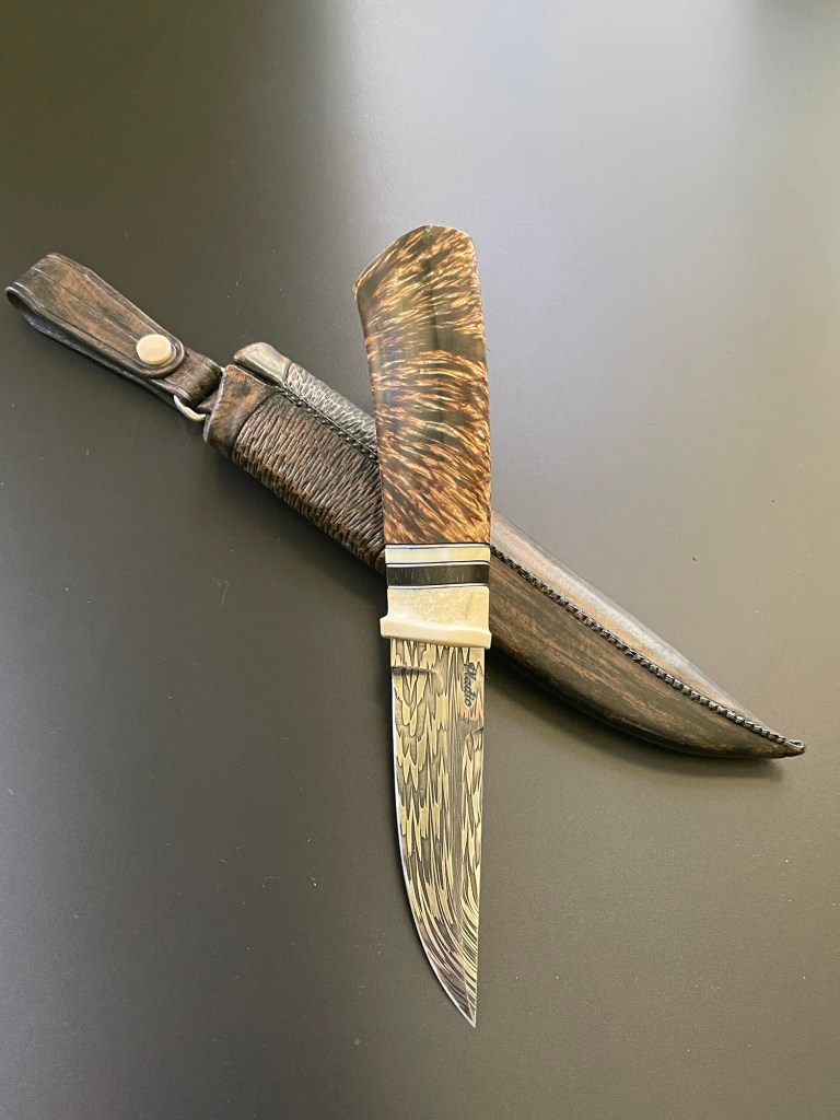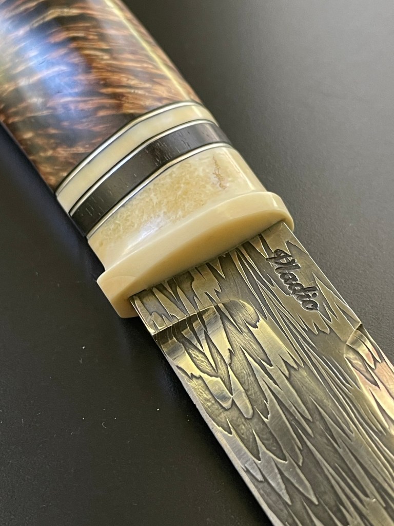 blade from Vladic Daniluk, bolster of fossil walrus bait . handle in dyed and stabilized masurbirch 👍
