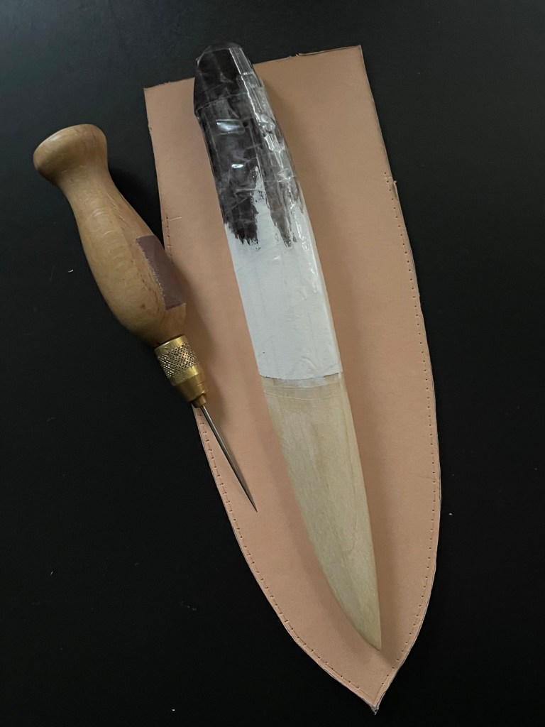 … Vanadis 4 extra in the blade, grinded by Robert Mattsson. dyed moose antler, stabilized birch and pewter spacer. sheath in rawhide leather 🤗