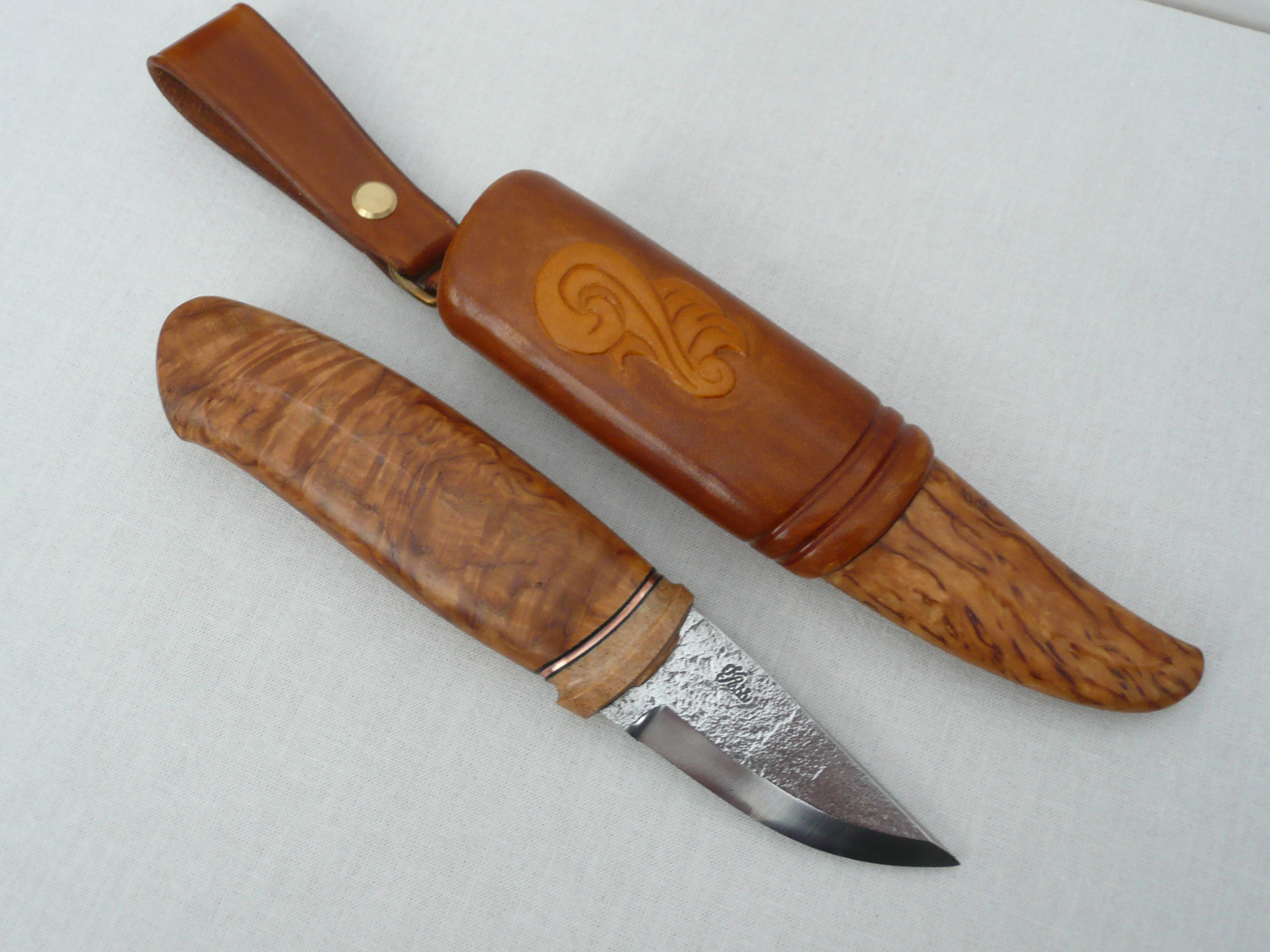 handforged blade by K. Andersson. handle in dyed reindeer horn and masur birch.